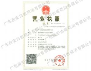 • 廣東房安白蟻防治有限公司營業執照